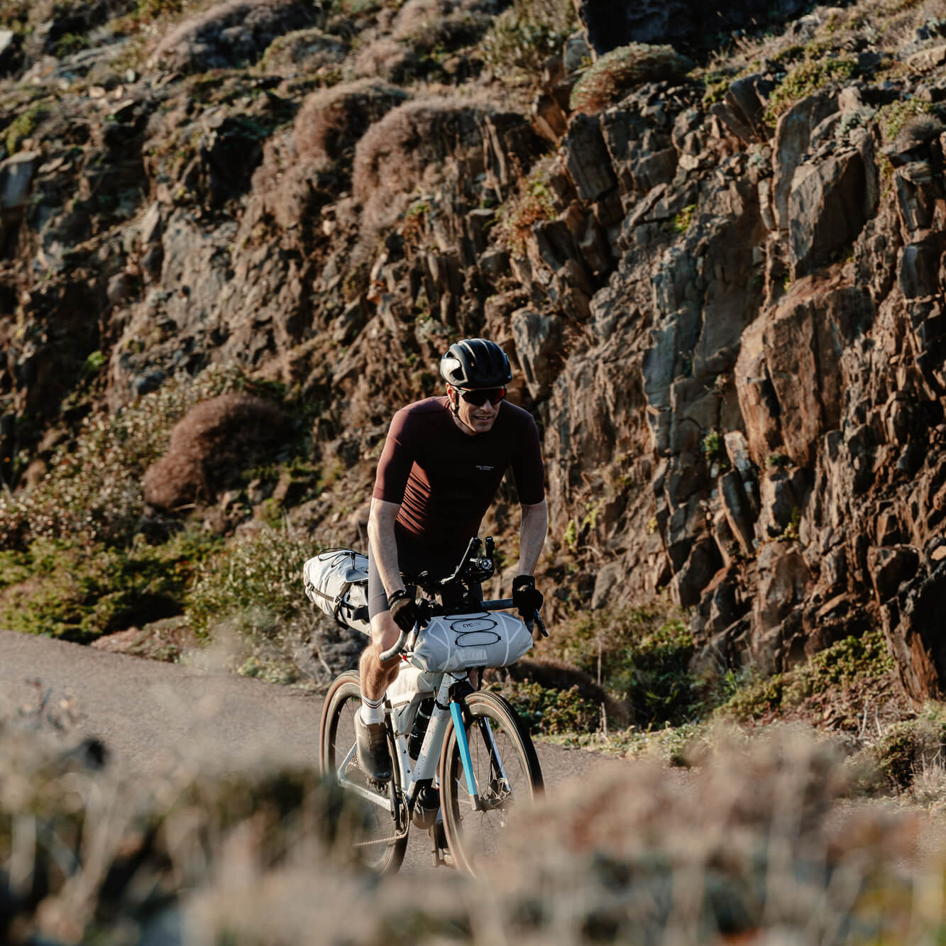 Des éléments réfléchissants améliorent la visibilité, et la sacoche est compatible avec la Handle Bar Aero Bag / 01 pour gagner encore en aéro et en capacité. Idéale pour duvet, vêtements et matelas, sur route, gravel ou VTT.