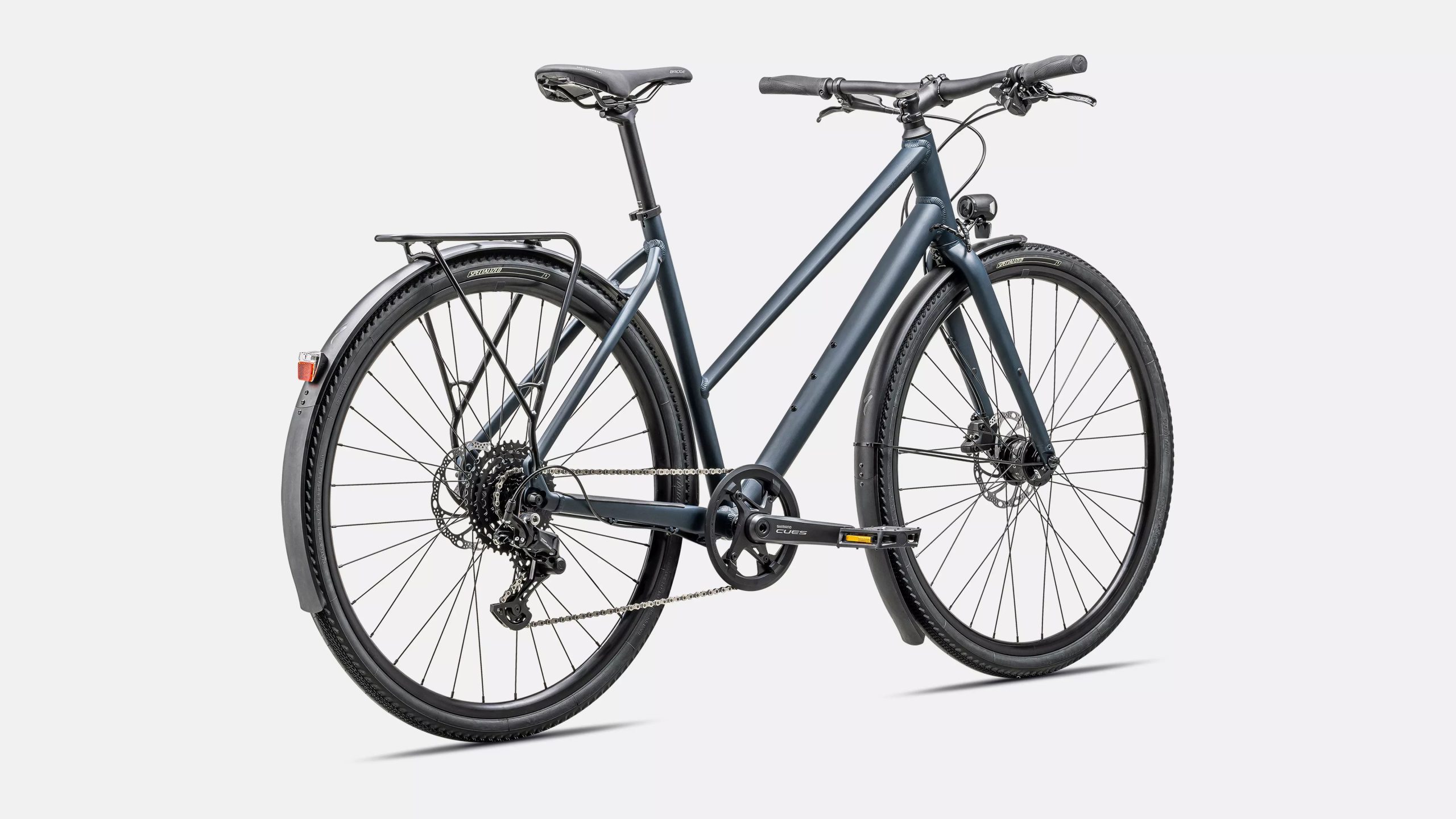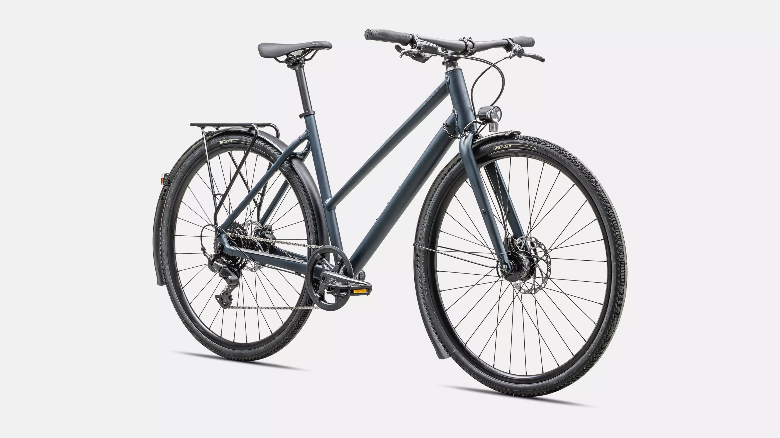 Montez, partez. Le Sirrus X 2.0 Step-Through offre un cadre ouvert léger, une transmission 1×9 Shimano CUES, des freins hydrauliques et un équipement complet (porte-bagages, garde-boue, éclairage dynamo) pour la ville et les chemins.