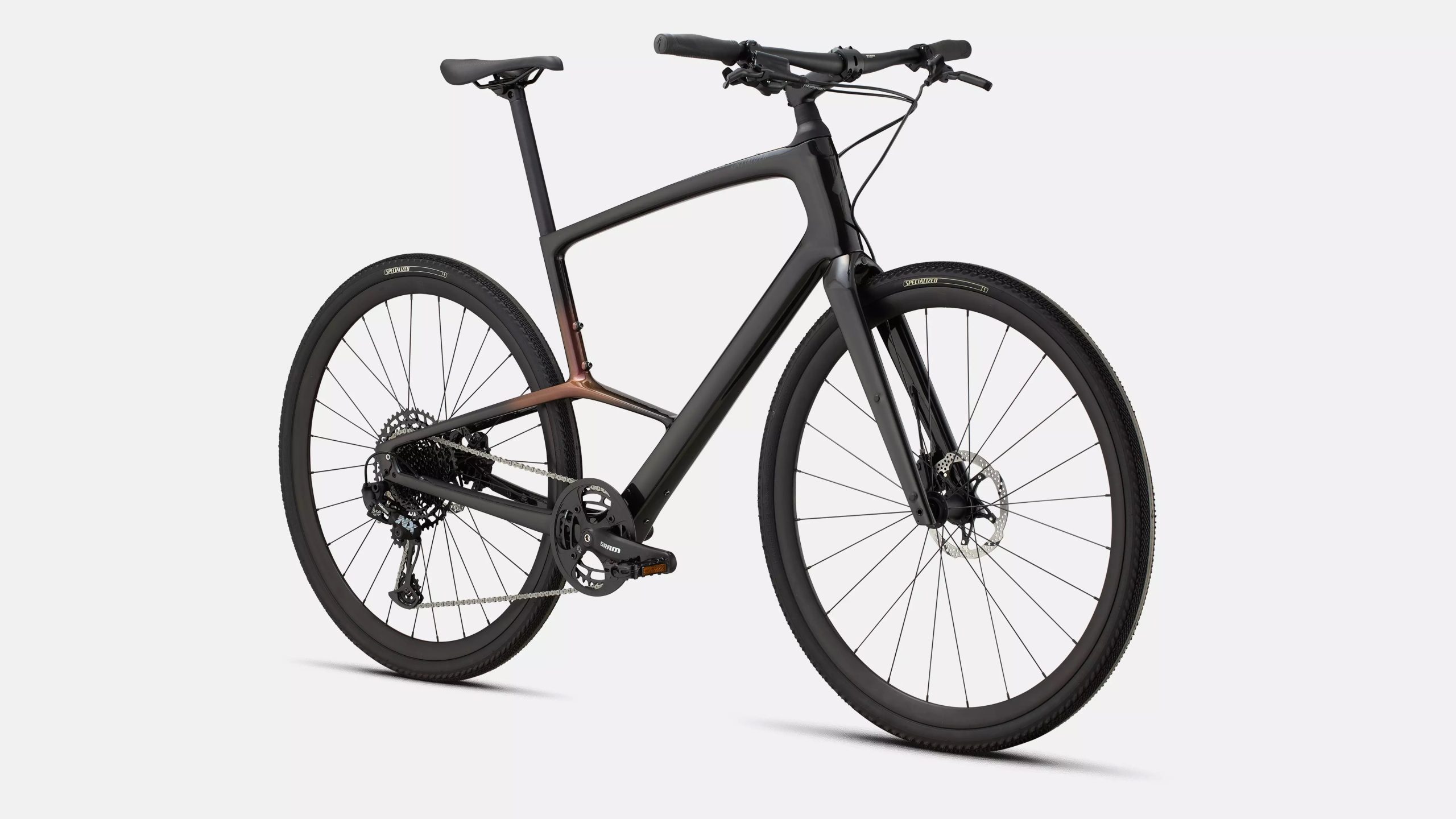 Fitness/gravel haut de gamme, rapide et confortable. Cadre carbone FACT 9r avec Compliance Junction, Future Shock 1.5 (20 mm) et transmission 1×12 pour filer en ville comme sur chemins, sans fatiguer les mains.