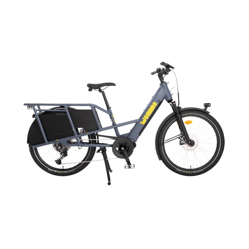 Le Yuba Boda Boda est le parfait équilibre entre vélo urbain et vélo cargo. Grâce à son cadre bas, ses roues de 26”, et son moteur Bosch Cargo Line Smart System, il se faufile facilement en ville, même chargé, tout en assurant stabilité, confort et sécurité.